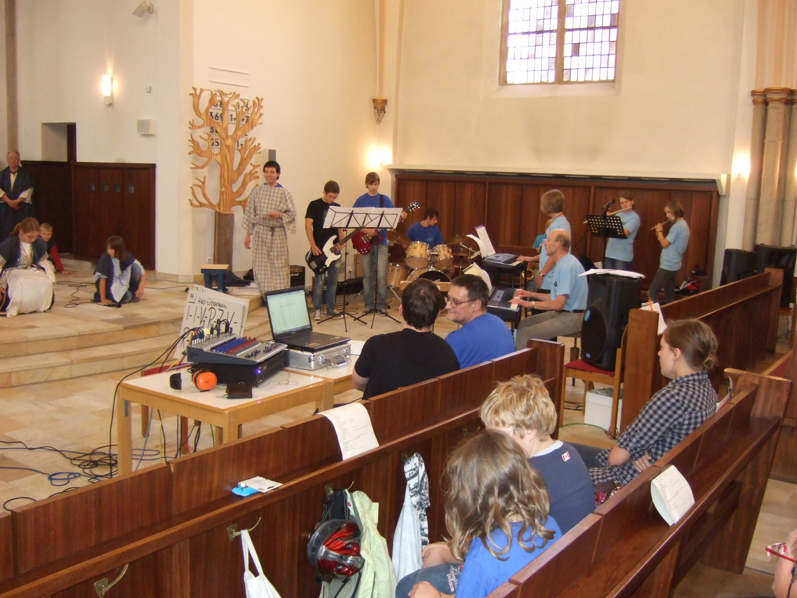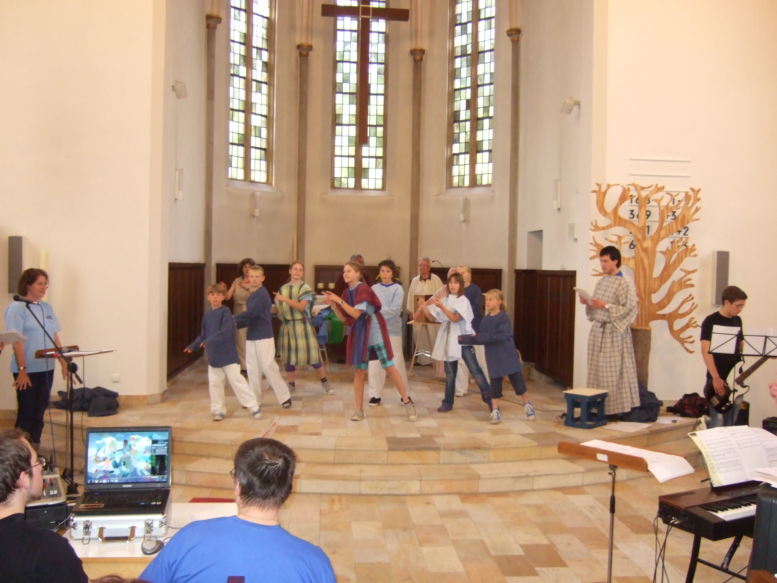 Frau Schulz warb bei der Präsentation um weitere Unterstützung des ambitionierten Projektes. So werden noch gesucht: Chorsänger (Ansprechpartner ist Kantor Matthias Mißbach), Bandmitglieder, vor allem für das Saxophon. Auch in der Theatergruppe sind noch Stellen vakant, zum Beispiel für Statisten.