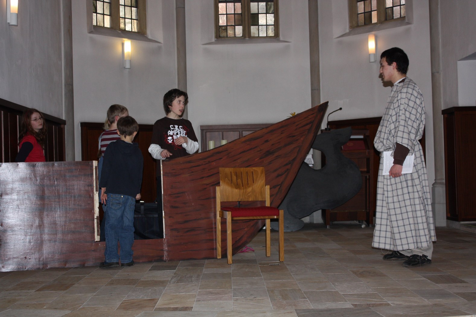 Vor einem Jahr hatte das Presbyterium zu einer Gemeindekonferenz eingeladen. Es sollten Ziele für eine Gemeindekonzeption erarbeitet werden. Dabei entstand die Idee eines generationsübergreifenden Projekts. Heike Schulz von der Projektgruppe: „Ich dachte mir, das ist eine so tolle Idee, da möchte ich wohl mitarbeiten. Mit mir dachten dies auch noch etliche andere, die genauso begeistert waren. Also trafen wir uns in regelmäßigen Abständen, suchten ein Musical aus, nämlich „Jona“, und legten Verantwortlichkeiten fest.“
