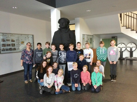 Während er am Freitag noch ganz in schwarze Farbe gehüllt vom Reli-Kurs der Klasse 5 besucht wurde, der so einiges zu Luther zu berichten und vorzutragen hatte, bekam er unter den Augen der Besucher des Tags der offenen Tür ein im wahrsten Sinne des Wortes "neues Gesicht".