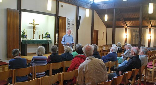 In der mittlerweile unter Denkmalschutz stehenden Kirche der Markus-Gemeinde gab es vom Vorsitzenden des Beirates einen vertieften Einblick in Bau und Struktur einer Bartning-Kirche, die nach dem 2. Weltkrieg als sogenannte "Notkirche" errichtet worden war.