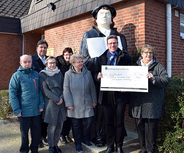 Vielen Besuchern der Jakobi-Gemeinde ist die überlebensgroße Lutherfigur bekannt. Im Reformationsjubiläumsjahr 2017 wanderte er durch Rheine, wurde mit unterschiedlichen Farben bemalt und mit Kommentaren versehen. Ein weit gereister Reformator eben...Im Rahmen eines Pressegesprächs zum Abschluss der Visitation hat die Kirchengemeinde Jakobi zu Rheine die Figur des Reformators jetzt dem Evangelischen Kirchenkreis Tecklenburg abgekauft. Pfarrerin Claudia Raneberg übergab Superintendent André Ost aus diesem Anlass einen Scheck in Höhe von 500 €. "Wir freuen uns sehr über diese Spende", so André Ost. Das Geld kommt der Stiftung "Denkmalwerte Kirchen im Ev. Kirchenkreis Tecklenburg" zugute. Die Stiftung trägt mit Hilfe von Spenden und Zustiftungen zum Erhalt der 21 denkmalwerten Kirchen im Kirchenkreis bei. Weitere Informationen unter www.denkmalwert.de