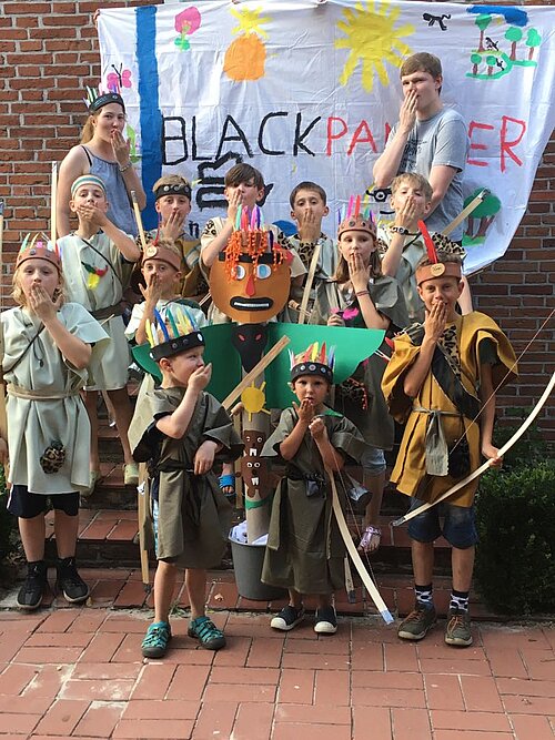 „Der Wilde Westen“ lag in diesem Jahr ganz in der Nähe von Papenburg. In Mitling Mark schlugen eine kleine Gruppe von Kindern vom Stamm „Black Panter“ ihre Schlafplätze im Alten Pfarrhaus auf.