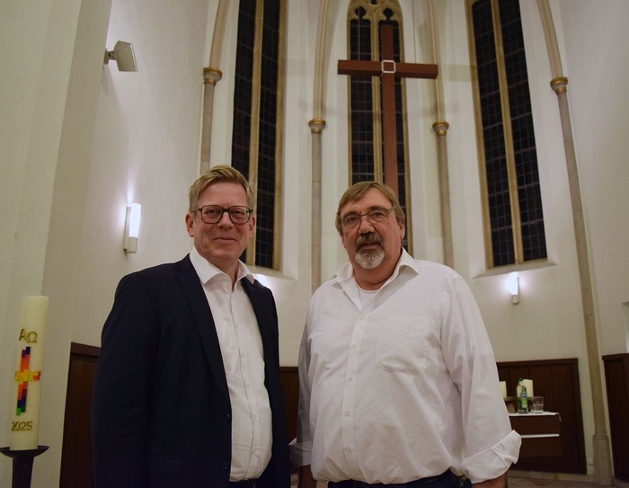 Bild oben: Landeskirchenrat Dr. Jan-Dirk Döhling (links im Bild) referierte beim Jakobitreff in Rheine.