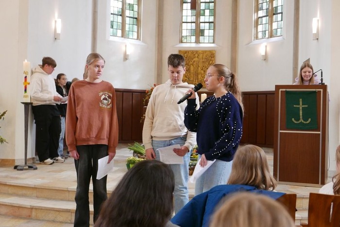 Erntedankfest in der Jakobi–Kirche. Konfirmanden und Kinderchor gestalten Familiengottesdienst.