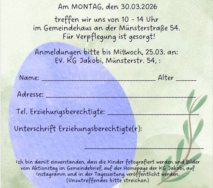Großer Kinderaktionstag in den Osterferien im Gemeindehaus Jakobi