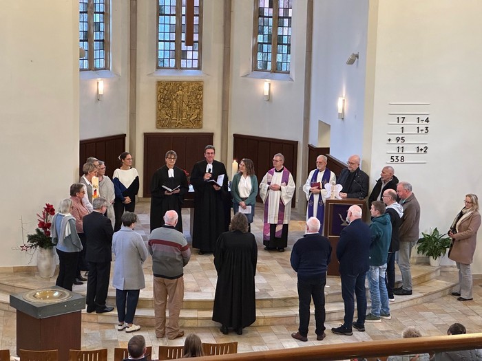 In mutmachenden Voten wünschten Haupt- und Ehrenamtliche der Gemeinde, des Presbyteriums und der Region West Britta Meyhoff Gottes Segen für ihren Dienst. Foto: D. Rosemann.