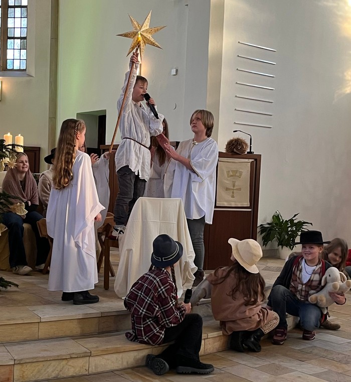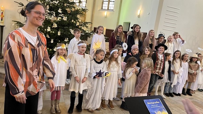 Die Besucher waren beeindruckt, wie souverän die Kinder ihre Texte vortrugen. Mit viel Mut und Begeisterung zeigten die Kinder auch - entweder einzeln oder zu zweit - dass sie sehr gut singen können. Begleitet wurde die Kinderchristvesper vom Kinderchor unter der Leitung von Lena Puschmann, Kantorin der evangelischen Jakobigemeinde. So starteten alle mit einem wohligen Gefühl in den Heiligen Abend.