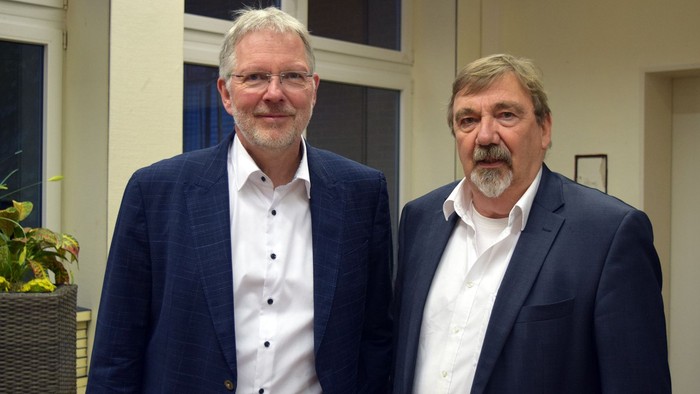 Bild oben: Arnd Henze (links) referierte im Jakobi-Gemeindehaus in Rheine. Eingeladen hatte Karl Wilms (rechts neben ihm). Fotos: Christine Fernkorn.