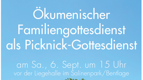 Picknickgottesdienst vor der Liegehalle im Salinenpark/Bentlage, zwischen Saline und Josef-Pieper-Schule (Pfrn. Raneberg, Pfr. Lemanski)