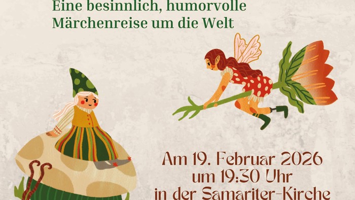 Am 19. Februar 2026 laden wir um 19.30 Uhr (Einlass 19.00 Uhr) zu einer besinnliche und humorvollen Märchenreise ein. Die Märchenerzählerin Frau Renate Schuurman nimmt die Zuhörenden mit auf eine Reise in die Welt der Märchen. Frau Schuurman ist Mitglied der europäischen Märchengesellschaft und in der Gilde der Erzähler. Sie dürfen sich auf eine einen abwechslungsreichen, inspirierende Abend freuen, der sie verzaubert. Der Eintritt ist frei, eine Anmeldung ist nicht erforderlich.