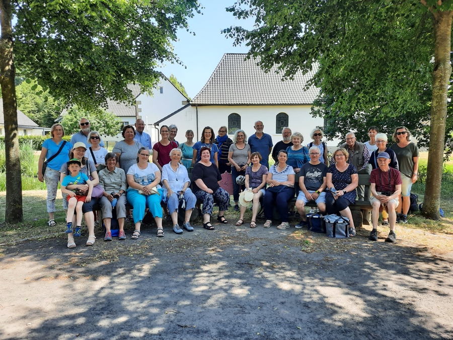Juni 2023: Kirchenchorausflug nach Venhaus, auf der Brücke vor St. Vitus