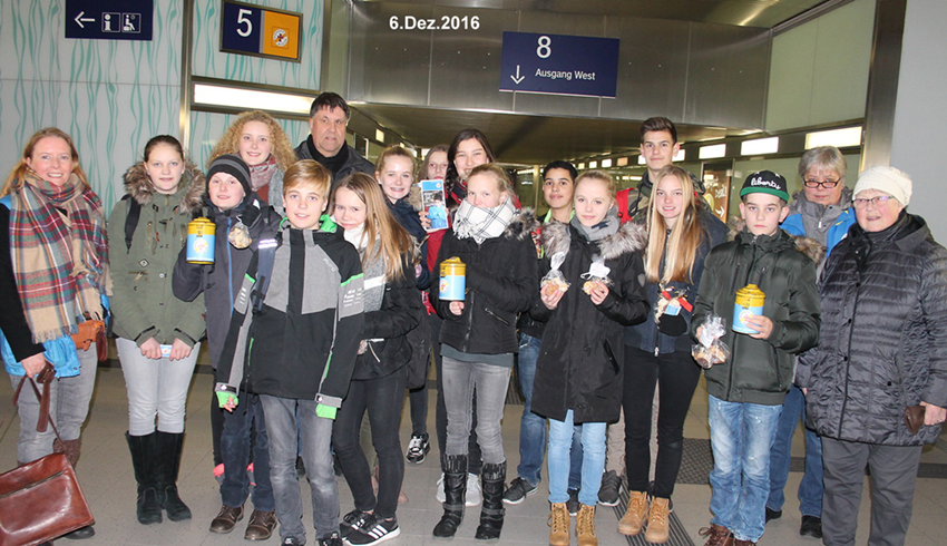 Bahnhöfe sind Verkehrsknotenpunkte. Täglich begegnen sich hier Menschen. Sie eilen aneinander vorbei. Keiner weiß, was den anderen bewegt; keiner schaut genau hin. Am Dienstag, den 6. Dezember, schauten einige genau hin. So zum Beispiel die Konfirmanden der Jakobi-Gemeinde in Rheine, die zusammen mit Pfarrer Rick und Karola Glinka vom Frauenabendkreis die Bahnhofsmission in Rheine besuchten. Und sie hatten ein konkretes Anliegen: Ihre Plätzchenaktion zugunsten der Bahnhofsmission Rheine. Gemeinsam mit ihren Eltern und dem Frauenabendkreis haben sie Plätzchen gebacken, die im Bahnhof in Rheine gegen eine Spende zugunsten der Bahnhofsmission verteilt wurden. Der Frauenabendkreis, der schon seit Jahren Plätzchen für eine Suppenküche in Rumänien backt, nahm diese Idee gern mit auf. „Wenn wir schon einmal dabei sind, kommt es auf ein paar Plätzchen mehr oder weniger auch nicht an“, berichtete Carola Glinka von den 145 Plätzchentüten, die verteilt werden sollen.